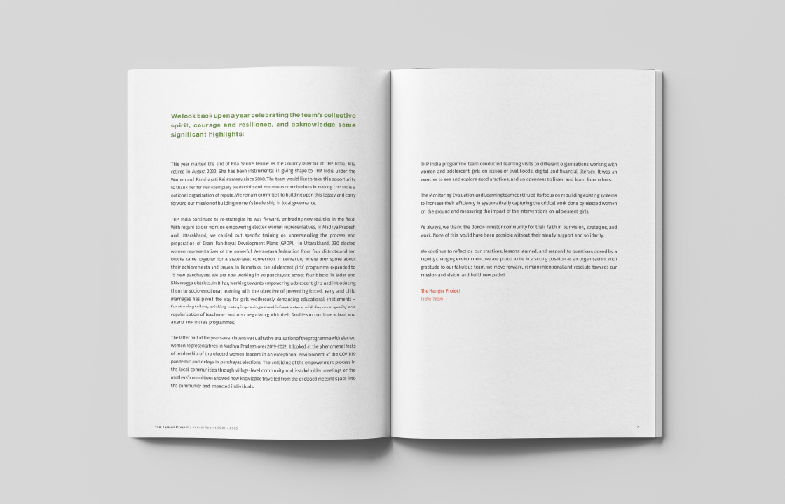 Annual Report Design for Hunger Project (India)